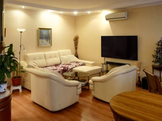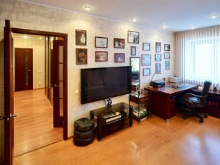 В квартире выполнен качественный современный ремонт с использованием долговечных материалов: установлены натяжные потолки, пластиковые окна, двери из натурального дерева и двойная входная группа.